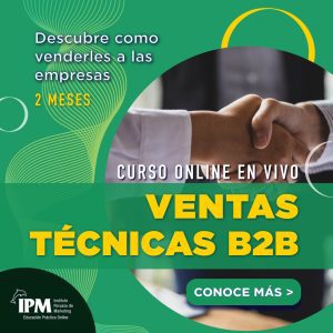 Si ya tienes experiencia en ventas y buscas desarrollar tus «habilidades blandas» y venderle a empresas o instituciones, el curso ideal es Ventas Técnicas B2B (2 meses – 16 sesiones).
